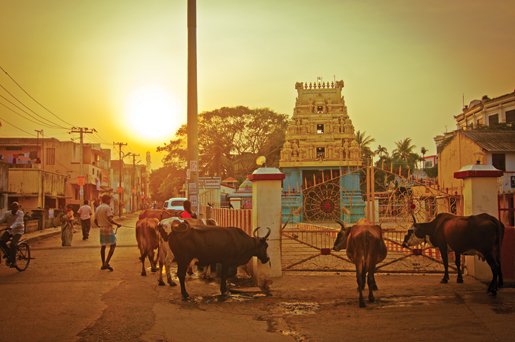 However, one hot Chennai afternoon, I left my cool oasis, camera in hand and walked. I passed the touts and cab drivers at the entrance to the hotel and just kept walking. I was greeted by children with wide eyes and big smiles, families emerged from their concrete homes peering through their improvised curtain doors wanting to have their photo taken. The slum was a labyrinth that would suddenly open up to common large expanses, where families would gather to a communal TV, play cricket and just sit and watch people go by. As the dense orange sun finally set, the streets became a blaze of kerosene lamps and local markets that seemed to spring up out of nowhere. Vendors sat quietly in the warm glow behind mounds of colourful and exotic fruits and people lined up to give offerings at the local south Indian temples whose bright and ornate pinnacle roofs reached out from the chaotic streets in which they were placed and towards the expanse of peaceful twilight sky above. I don’t think this scene has changed in a hundred years.