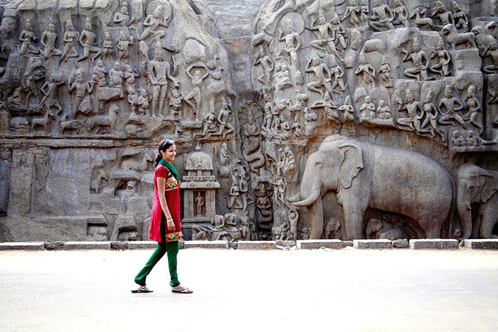 It’s about an hour’s drive from Chennai to another UNESCO site – the resort town of Mahabalipuram on the Coromandel Coast. Scattered across sun-bleached land are more than 400 monuments dating back mostly to the 7th and 8th century Pallava dynasty – rock cut monuments, cave temples and stunning Arjuna’s Penance, the largest open-air rock relief in the world.